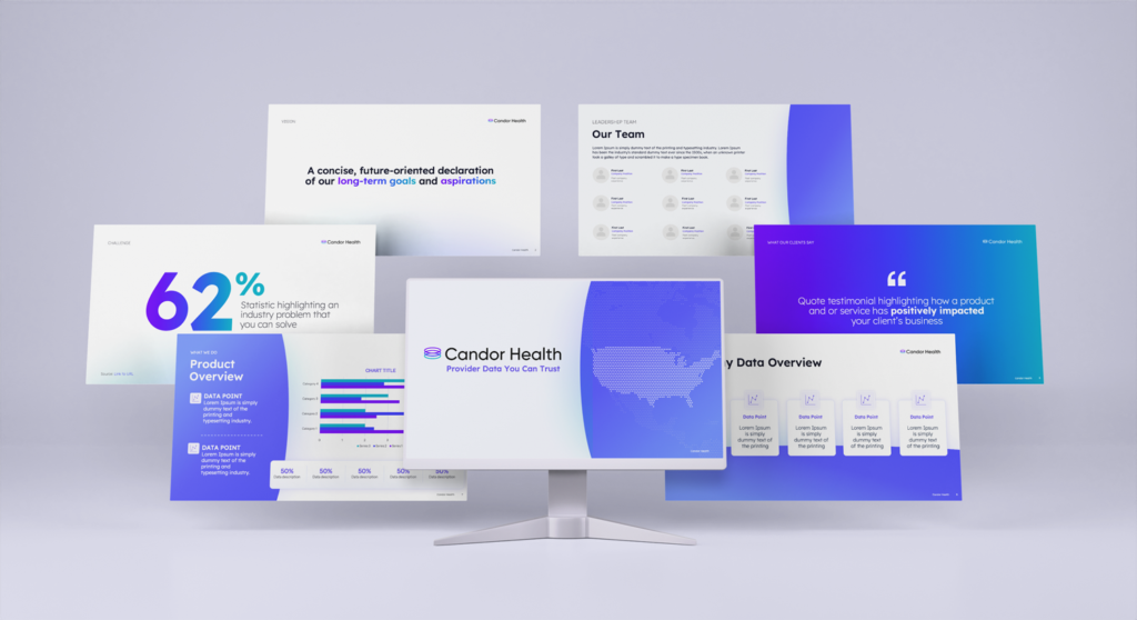As a design consultant for Candor Health, I partnered closely with the CEO, Head of Strategic Partnerships, and Marketing Lead to refine and simplify the company’s digital presence. I helped shape a clearer, more intuitive website experience by streamlining the design, strengthening visual hierarchy, and aligning the interface with the brand’s evolving identity. To keep every touchpoint cohesive, I developed a suite of social media templates that reflected the updated branding. I also designed a comprehensive pitch deck and a flexible Google Slides template to support business development and client presentations. In addition to digital and brand work, I consulted on the design of Candor Health’s new office space, creating multiple visual directions and environmental design options to help guide their decision-making.